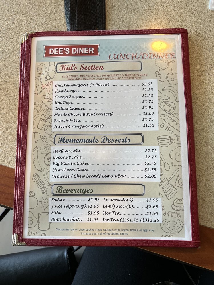 Welcome to Dee's Diner, a culinary gem located at 1314 W Grantham St in Goldsboro, NC. This diner is not just a place to grab a meal; it’s a delightful experience perfect for everyone. Offering a menu that caters to both kids and adults, Dee's Diner excels in creating comfort food that feels like home.
